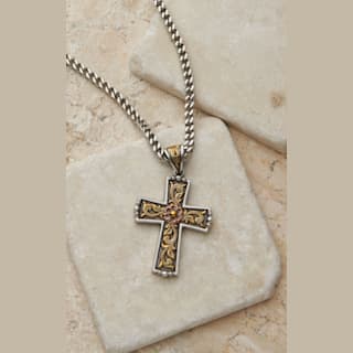Twister Men's Antique Silver and Gold 24in Cross Necklace