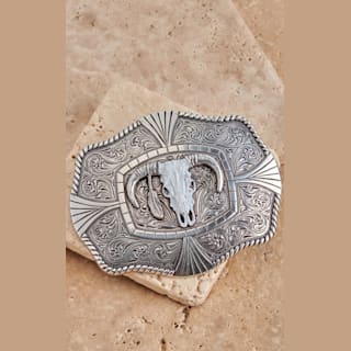 M&F Western Silver with White Skull Rectangle Belt Buckle