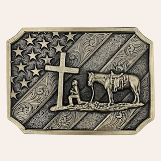 Montana Silversmiths Men's Brass Plate Patriot Christian Cowboy Attitude Belt Buckle