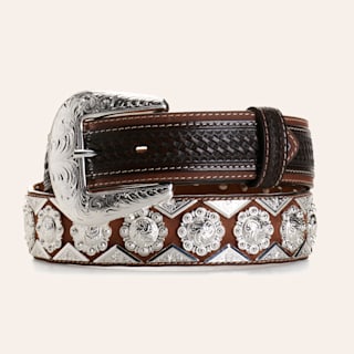 Cowboy Chrome Men's Brown Basket Weave with Silver Diamond and Berries Concho Western Belt