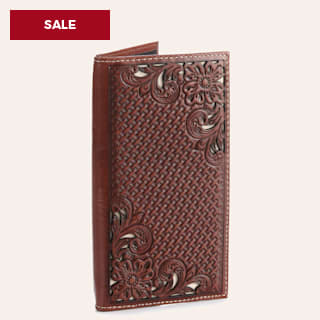Nocona Brown Basketweave and Floral Tooled with Ivory Inlay Rodeo Wallet / Checkbook Cover
