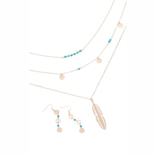 Silver Strike Gold & Turquoise 3 Strand Feather Jewelry Set