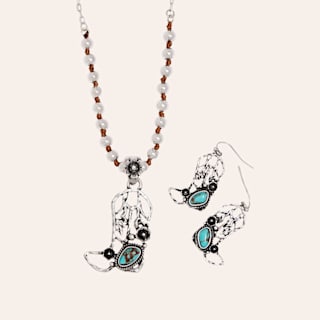 Silver Strike Silver Beaded Boot Charm Jewelry Set