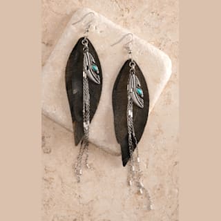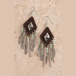 Cowgirl Confetti Serenity Copper Leather Feather and Chain Dangle Earrings