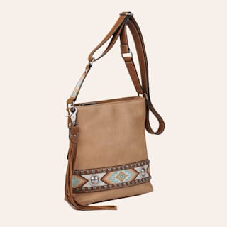 Nocona Carmen Tan with Southwest Stitching and Conchos Concealed Carry Crossbody Handbag