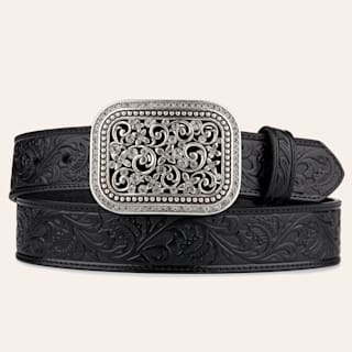 Ariat Women's Black Lasercut Paisley Print & Silver Filigree Buckle Belt