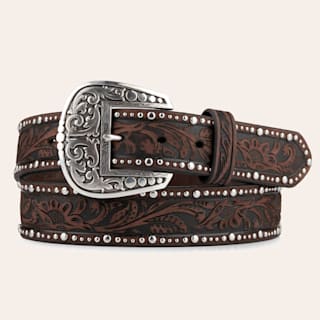 Ariat Women's Dark Brown with Floral Tooling and Studs Trim Belt