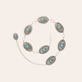Ariat Silver & Turquoise Stone Oval Concho Chain Belt