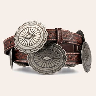 Ariat Women's Brown Tooled with Silver Oval Floral Conchos Belt