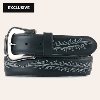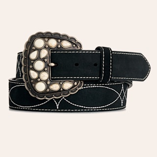 Angel Ranch Black & Silver Roughout Boot Stitch Stone Belt