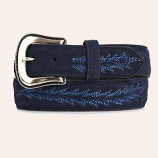 JRC & Sons Women's Nancy Indigo Suede & Blue Ombre Stitch Leather Belt