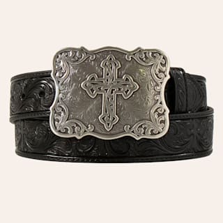 Nocona Black & Silver Embossed Cross Belt Buckle
