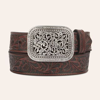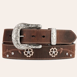 Ariat Distressed Brown with Embroidered Scrolling Flowers & Crystals Women's Scalloped Belt
