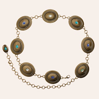Catchfly Women's Bronze with Turquoise and Crystals Linked Concho Chain Belt