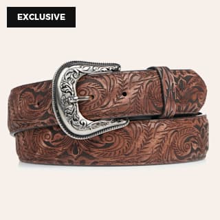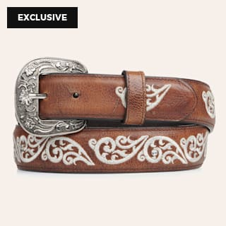 Cavender's Chestnut Brown with Swirl Embroidery Leather Belt