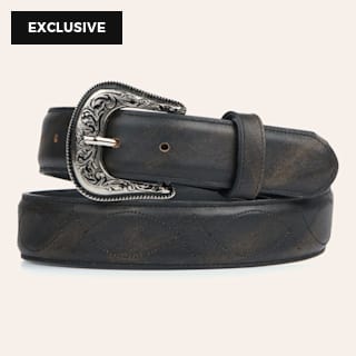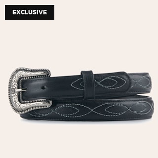 Cavender's Women's Rustic Black with Fancy Stitch Leather Belt