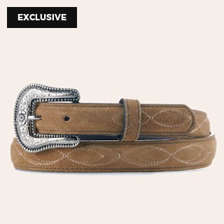 Cavender's Women's Bentley Toasty Tortilla Suede Stitched Belt