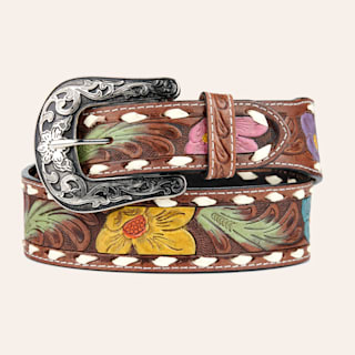 Nocona Women's Leather Tooled Colorful Painted Flower Western Belt