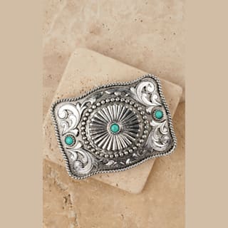 AndWest Silver with Turquoise Concho Accents Etched with Rope Edge Belt Buckle