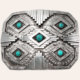 AndWest Silver & Turquoise Concho Etched Aztec Belt Buckle