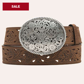 Tony Lama Women's Brown Pierced Filigree Trophy Belt