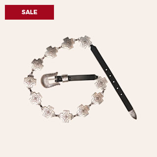 Tony Lama Silver Square Crosses Chain & Black Leather Belt