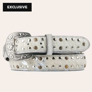 Cavender's Women's White & Silver & Studs Pony Hair Belt