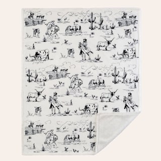 HiEnd Accents Black & White Ranch Life Western Toile Campfire Sherpa Throw