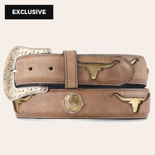 Cavender's Women's Taupe with Gold Longhorn Inlays and Conchos Belt