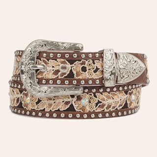 Angel Ranch Women's Brown Leather with Floral Embroidery Crystals and Studs Western Belt