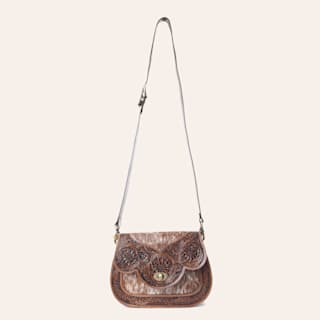Myra Bag Brown Hair on & Tooled Leather Scalloped Flap Shoulder Bag