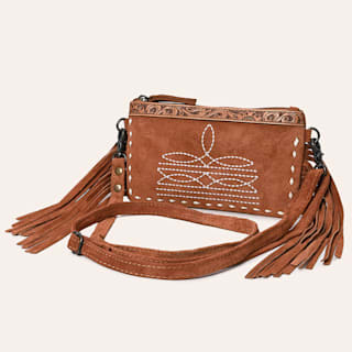 American Darling Brown Boot Stitch Fringed Crossbody Wallet