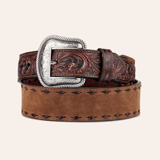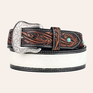 Nocona Men's Cream Hair on Hide & Feather Tooled Western Belt