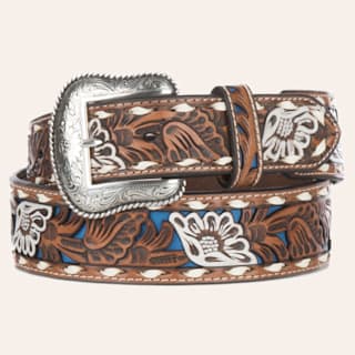 Nocona Men's Tan Genuine Leather Floral with Blue Painted Inlay Western Belt