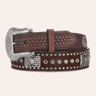 Nocona Men's Dark Brown Leather Rhinestone Accents Western Belt