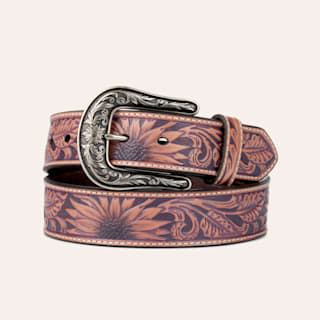 Nocona Women's Shades of Coffee Sunflower Tooled Leather Western Belt