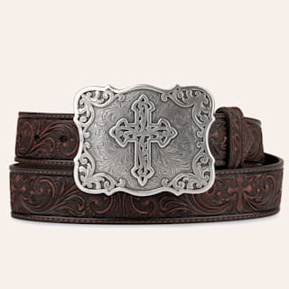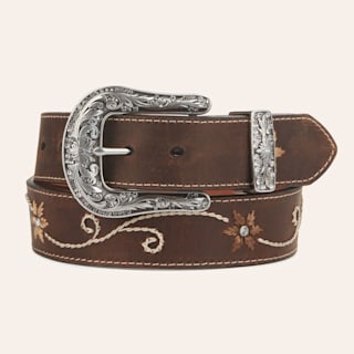 Nocona Women's Brown Tooled Floral and Cross Fashion Western Belt