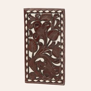 Nocona Brown & Ivory Tooled Overlay Rodeo Wallet / Checkbook Cover