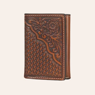 Nocona Tan Floral and Basket Weave Tooled Tri-fold Wallet