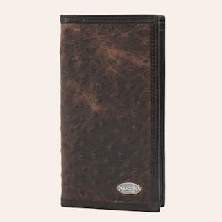 Nocona Dark Brown Ostrich Print Checkbook / Rodeo Wallet