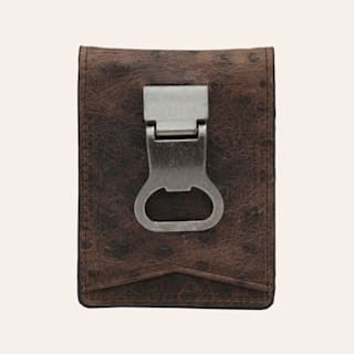 DBL Barrel Brown Ostrich Print with Bottle Cap Money Clip Bi-Fold Wallet