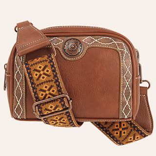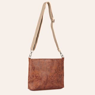 Nocona Amelia Cinnamon Floral Tooled Camera Strap Crossbody Bag