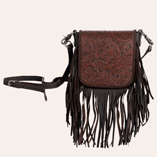 Montana West Coffee Tooled Leather Fringed Crossbody Saddle Bag