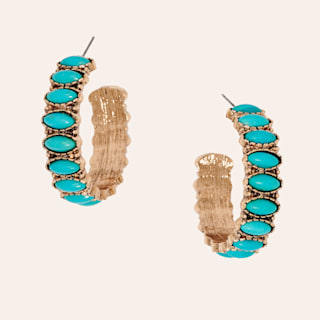 Southern Grace Gold & Turquoise Stone Hoop Earrings