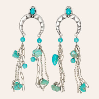 Southern Grace Silver & Turquoise Stone Crescent Concho Dangle Earrings