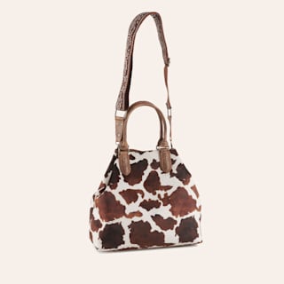 Nocona Women’s Soft Leather Cream & Cinnamon Cow Print Conceal Carry Satchel Bag