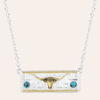 Montana Silversmiths Longhorn Trails Silver & Gold Engraved Turquoise Stone Necklace
