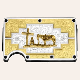 Montana Silversmiths Silver & Gold Santa Fe Sunrise Praying Cowboy Card Case
