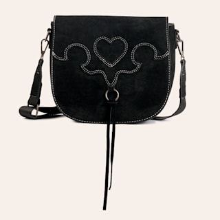 Justin Black Suede Heart Stitched Crossbody Saddle Bag