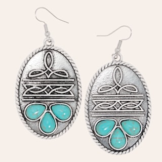 Southern Grace Silver & Turquoise Oval Boot Stitch Earrings